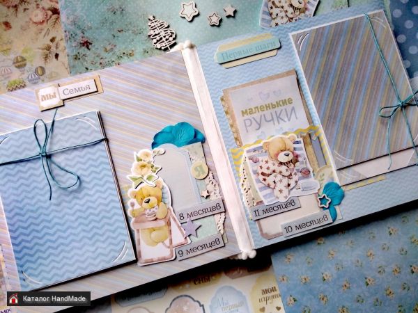 Размер 21*21 см. Вместит 45 фото 9*13 см. Экологически безопасный. Внутри есть кармашки для снимка УЗИ, бирочки, пупка. Также карточки для записей важных моментов взросления малыша по месяцам.
