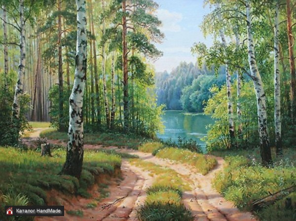 Алмазная вышивка-мозаика "Дорога среди берез" (400х300 мм) Сложность Для опытных Количество цветов 30 Выкладка Полная Тип стразов Квадратные Упаковка Коробка Артикул АЖ-1332 Вес 345 г