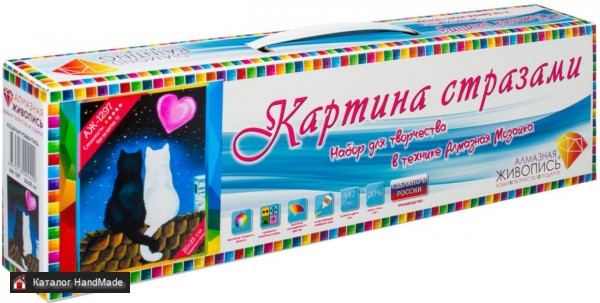 Алмазная вышивка-мозаика "Кошачья романтика" (200x250 мм) Сложность Для начинающих Количество цветов 15 Выкладка Полная Тип стразов Квадратные Упаковка Коробка Размер упаковки 380х110х60 мм Артикул АЖ-1297 Вес 150 г