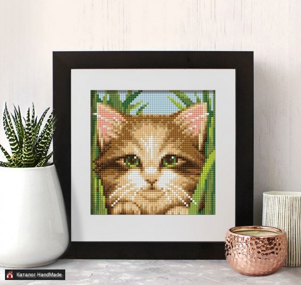 Алмазная вышивка-мозаика "Зеленоглазый котёнок" (150х150 мм) Сложность Для начинающих Количество цветов 15 Выкладка Полная Тип стразов Квадратные Упаковка Коробка Состав Полотно-схема с клеевым слоем Пластиковое блюдце Упакованные стразы Пинцет/стилус Инструкция