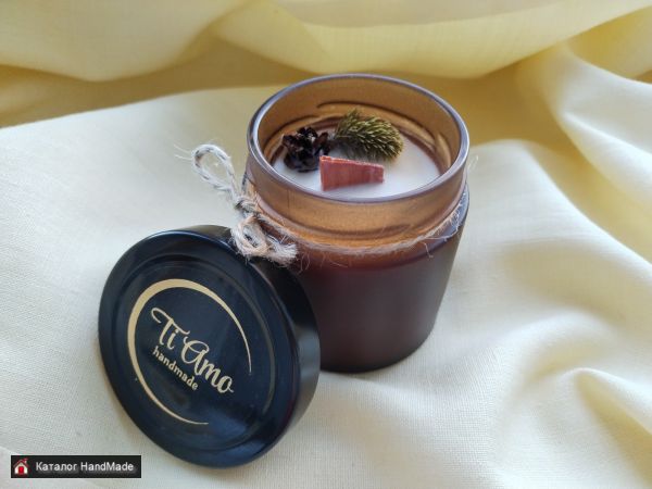 Ароматическая свеча с ароматом "кожа и древесина". Запах дорогого помещения или автомобиля, где в интерьере много натурального дерева и кожи. Соевый воск, фитиль с треском (трещит, как дрова в камине) Объём 200 мл, время горения более 40 часов