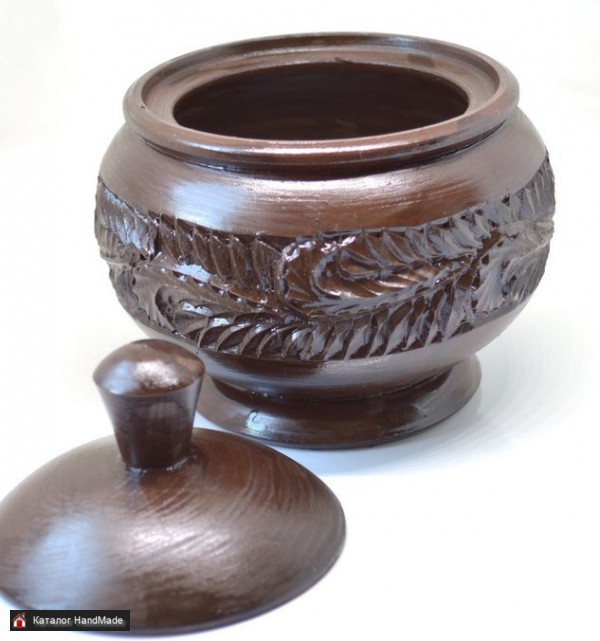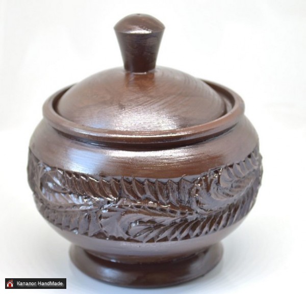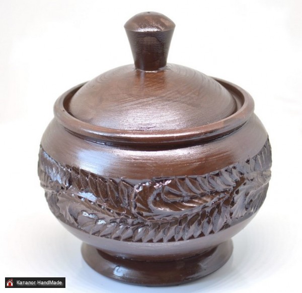 Деревянная банка-кубышка в русском деревенском стиле, по периметру украшена резьбой в виде растительного орнамента. Покрыта антисептическим акриловым лаком коричневого цвета, поэтому банку можно мыть губкой с мылом. Сверху покрыта бесцветным лаком для ограждения от контактов с красителями. Размеры. Высота от дна до пимпочки 11 см, диаметр 9 см