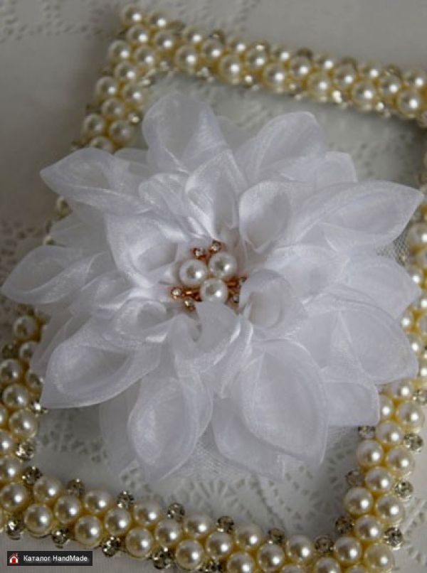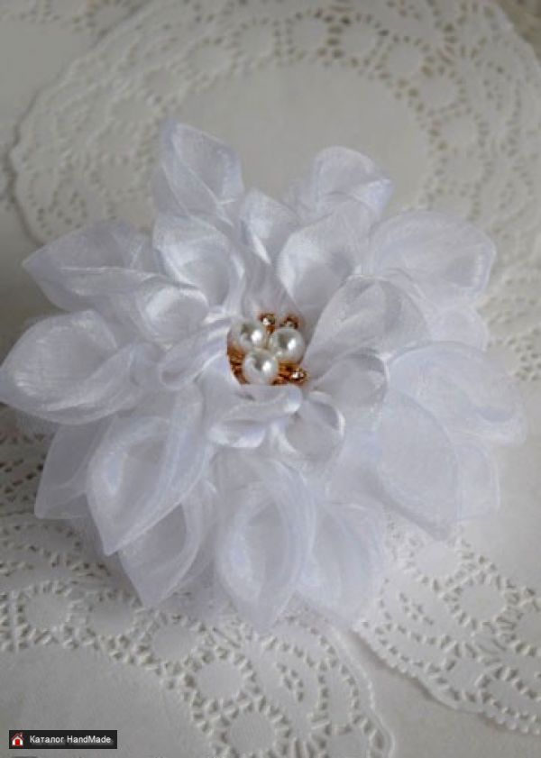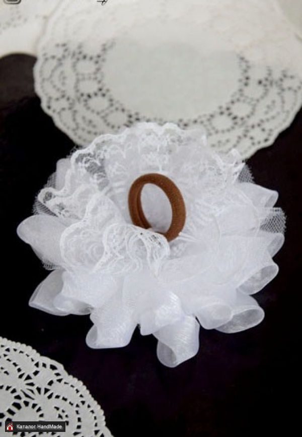 Бант - розетка резинка на один хвостик из лент органзы и кружева. Очень пышный. Диаметр - 11 см.
