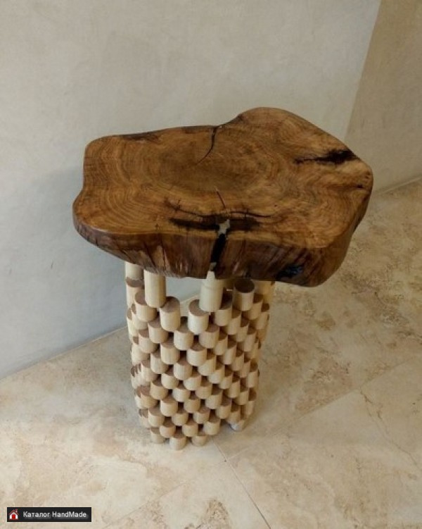 Материалы: Дуб, берёза, дерево, масло Размер: Высота: 76 см. Толщина сидения: 8 см. Диаметр сидения: от 35 до 50 см.