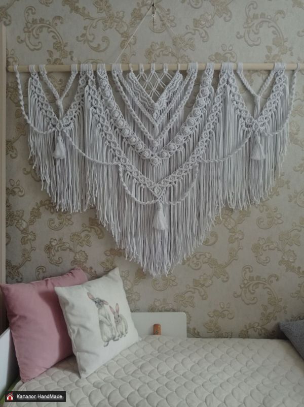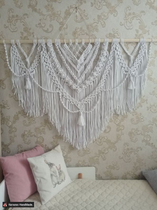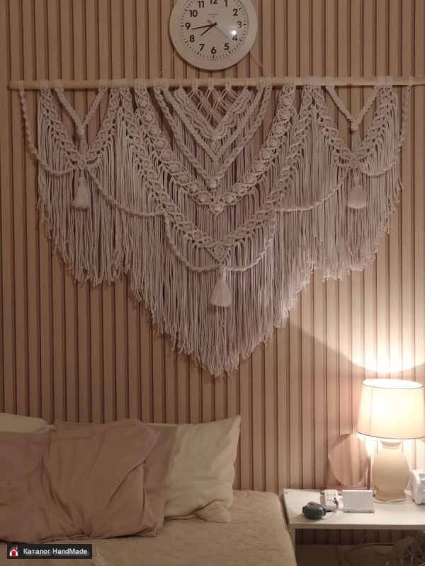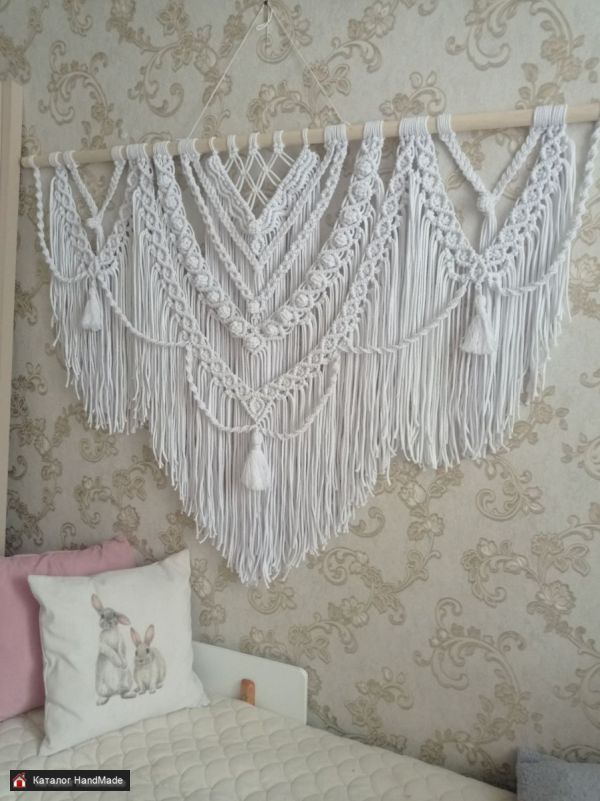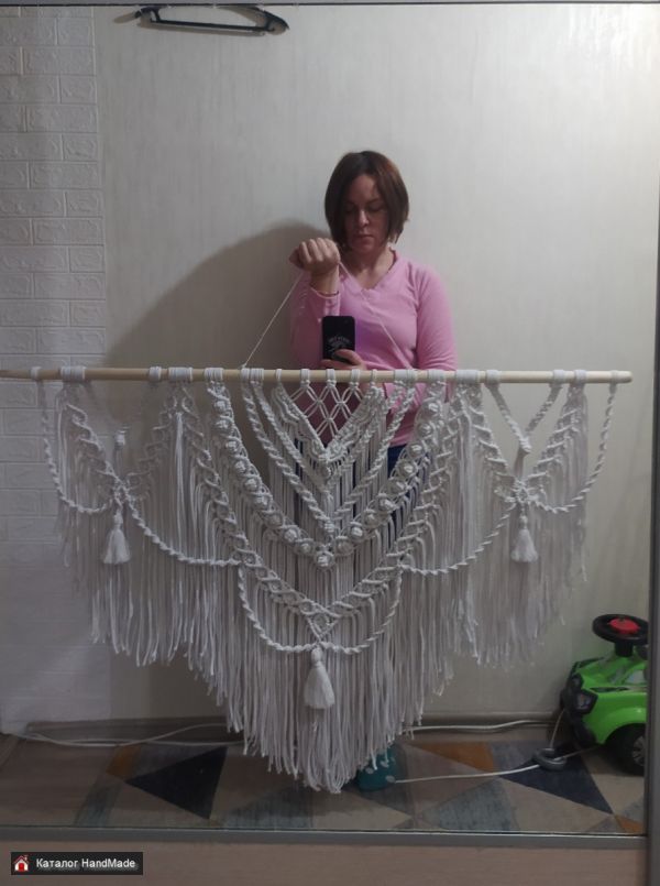 Большое нарядное пано макраме,из белоснежного шнура (хлопок ) с красивым нежным узором и густой бахромой. Украсит Ваш дом ,станет оригинальным подарком для близких, будет радовать глаз и несомненно добавит уюта и особую атмосферу.