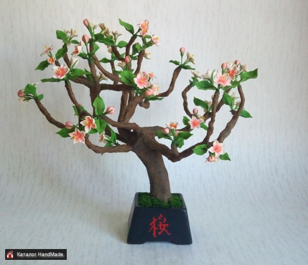Бонсай "Сакура" полностью сделан вручную из полимерной глины. В основе композиции прочный каркас из проволоки, поэтому веточки не отломаются, а цветы не оторвутся.Бонсай прекрасно украсит любой уголок вашей комнаты или послужит классным подарком для ваших близких, создавая иллюзию присутствия живых цветов, которые не требуют ухода и цветут круглый год! Если есть какие-нибудь вопросы, обращайтесь по телефону! Смотрите другие мои объявления!