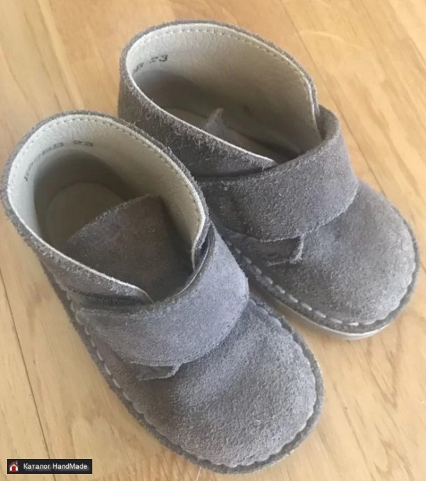 Детские ботинки ручной работы из натуральной замши и кожи. Внутри кожаная мягкая эргономичная стелька. Каучуковая подошва.