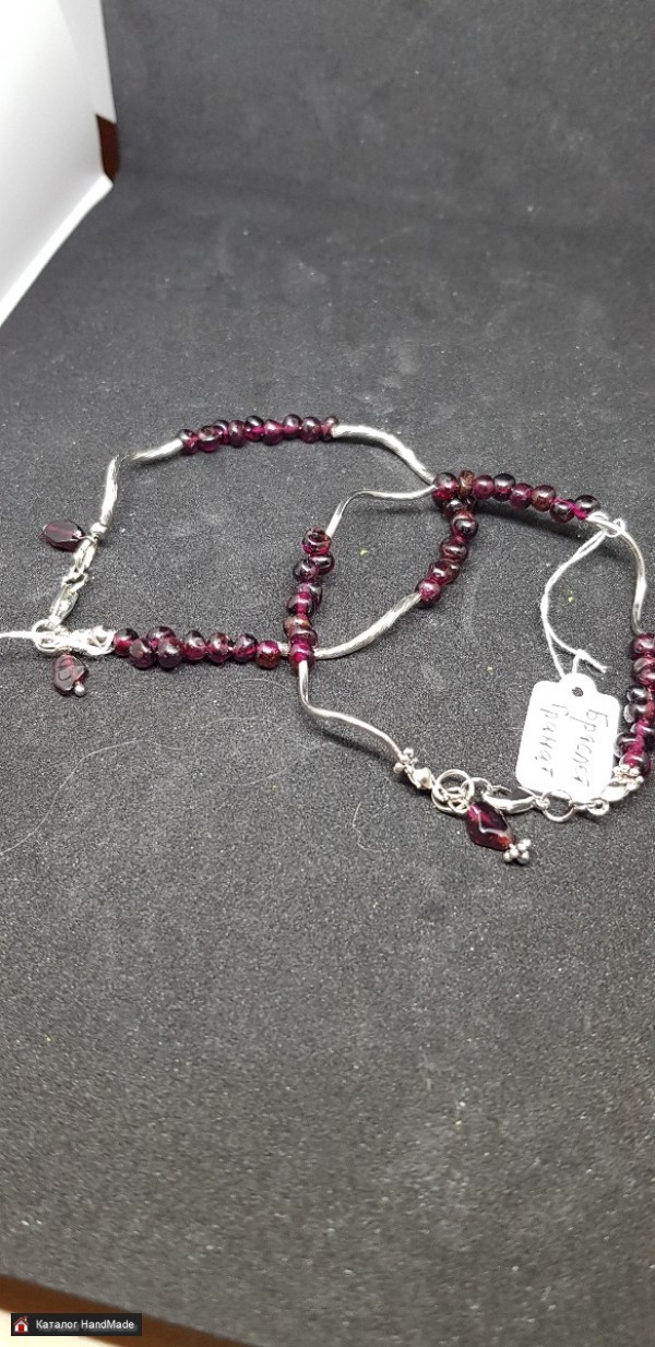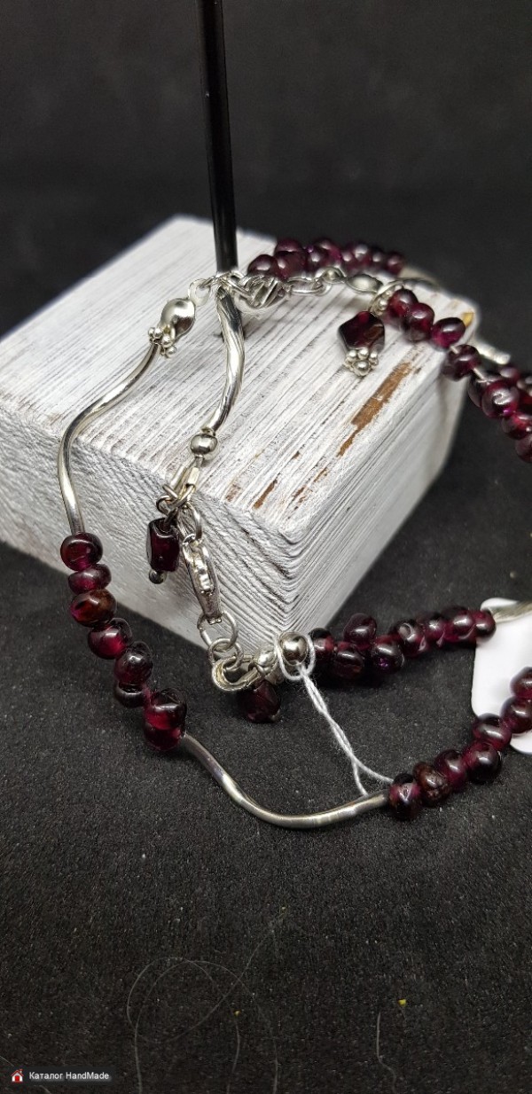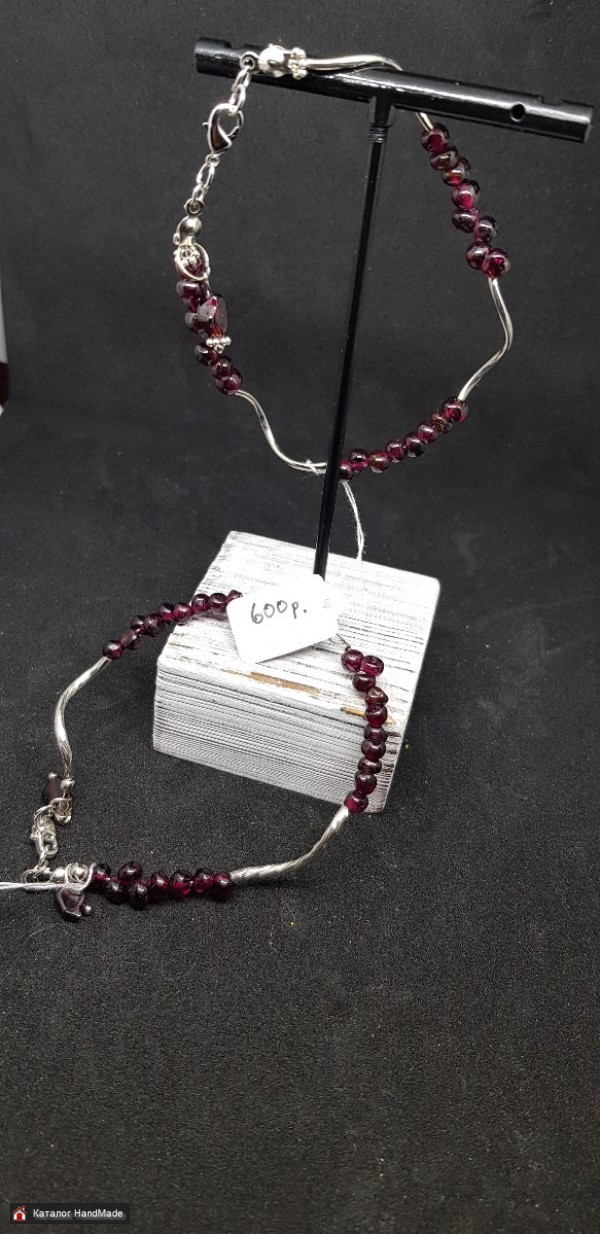 В наличии два браслета из натурального граната. Известно, что этот камень придает жизненной силы и приносит удачу. Фурнитура родированная, гиппоалергенная Окружность 17см