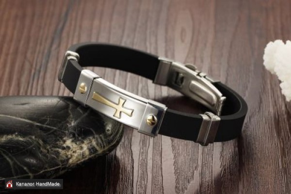 Мужской браслет из каучука, декорированный стальной пластиной. Размер: 21-22 см Ширина: 10 мм г. Москва, доставка по Беларуси