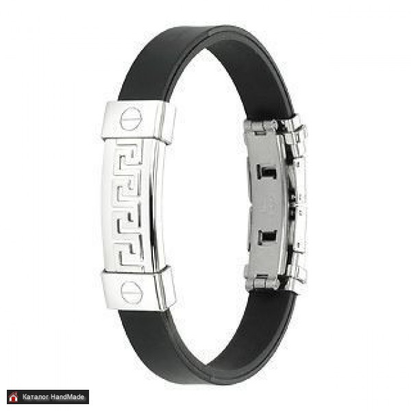 Браслет американского бренда Spikes из медицинской стали и каучука, с узором "лабиринт". Длина: 18-18,5 см Ширина: 10 мм
