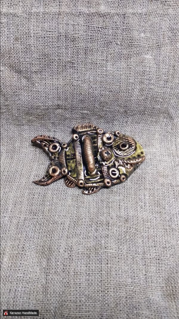 Рыбка Джоконда. Загадочная, еле уловимая улыбка. Брошь в стиле романтический стимпанк. Абсолютно уникальна. Размер 7х5 см. Легкая, но прочная.