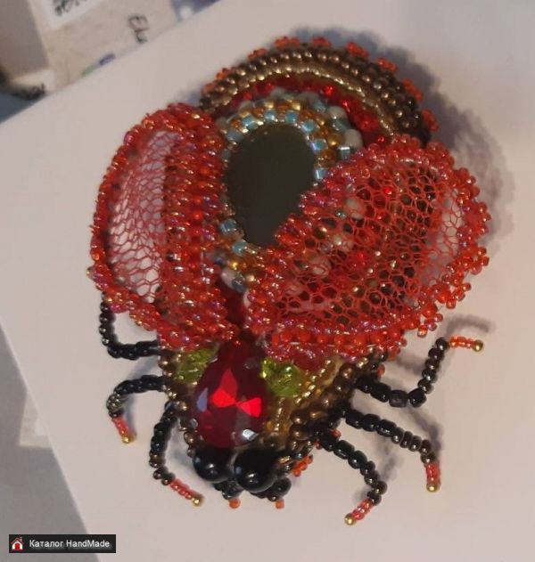 Брошь "Жужа красная" Уникальная авторская работа Может стать прекрасным подарком, который будет долго радовать своего хозяина
