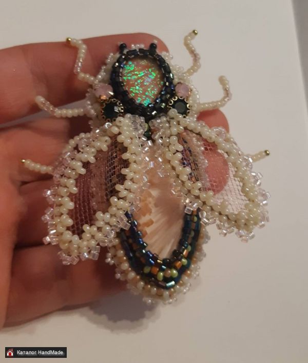 Брошь "Жужа кремовая" с розовым сколецитом. Яркое уникальное, украшение для ярких, уверенных в себе людей, готовых оставить неизгладимое впечатление.
