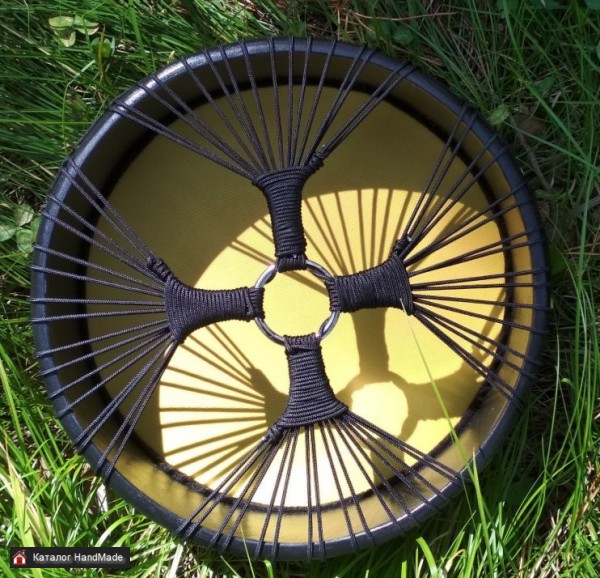 Ведический бубен - ни одно животное не пострадало :-) Очень красивый низкий звук для такого маленького бубна. Индейский бубен имеет систему натяжения мембраны с помощью веревок и центрального кольца.
