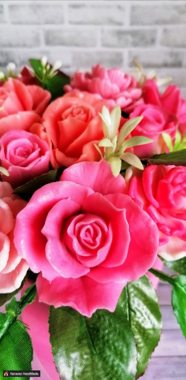 Прерасный букет из мыльных роз и пионов. Букет собран в шляпной коробке.Преимущество букетоа в шляпных коробках: нет необходимости искать вазу.Оригинальный подарок,который смотрится изысканно ,дорого. Высота 22 см диаметр 20 см. Упаковка в пакет .