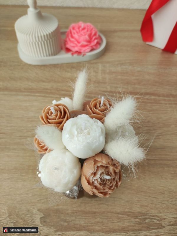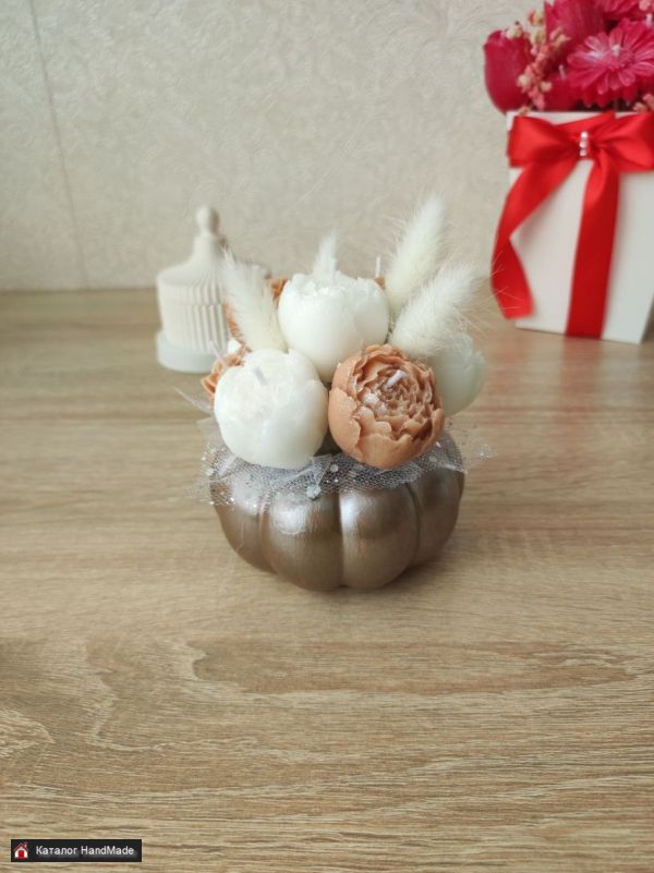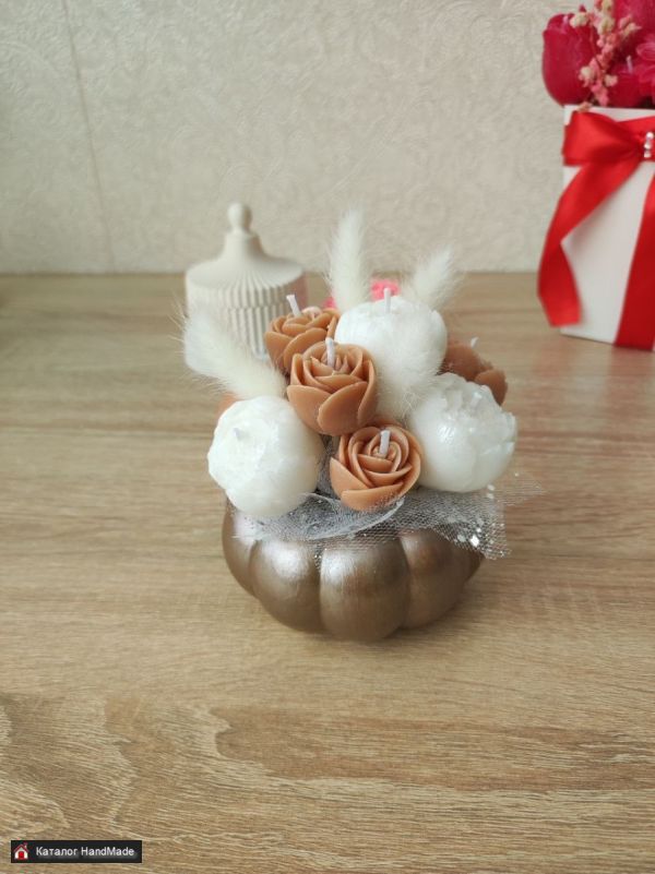 Букет из свечей ручной работы в гипсовом кашпо в карамельном цвете прекрасно дополнит ваш интерьер