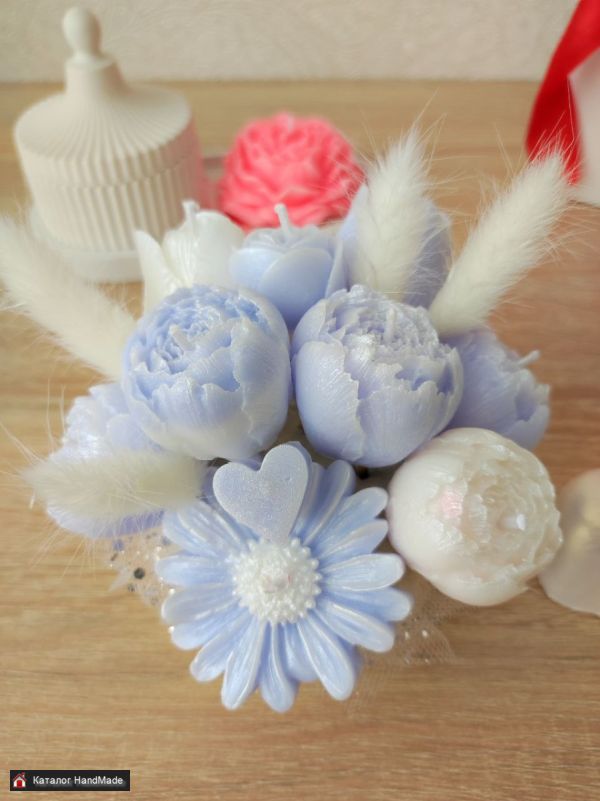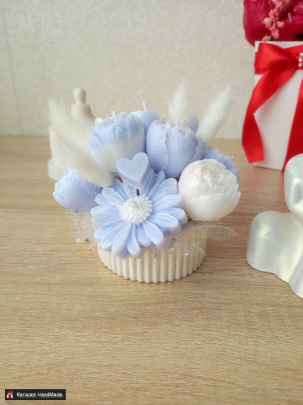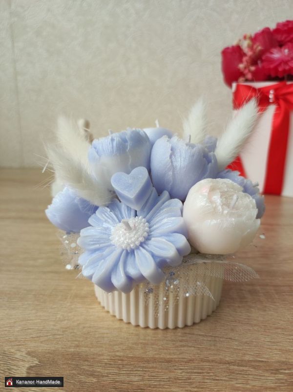 Букет из свечей ручной работы в гипсовом кашпо ...