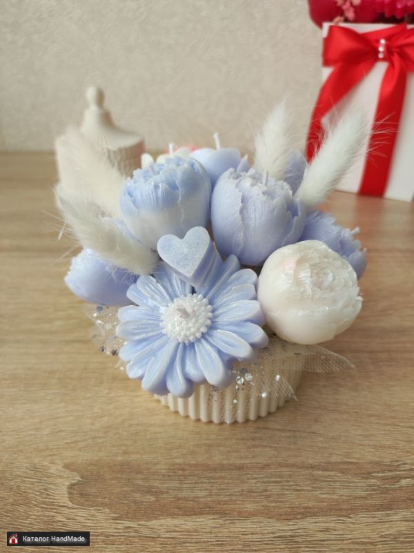 Букет из свечей ручной работы в гипсовом кашпо прекраско дополнит ваш и