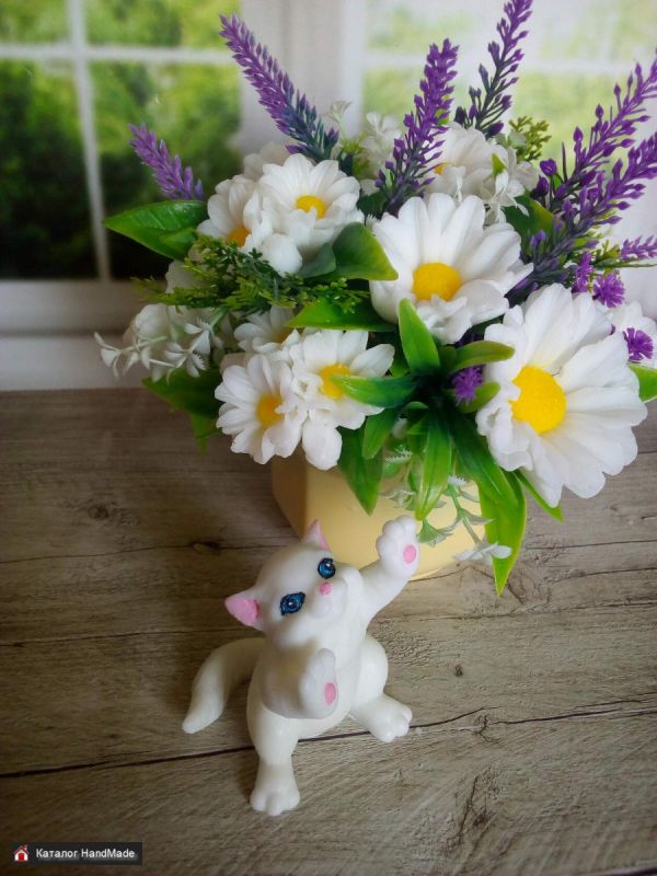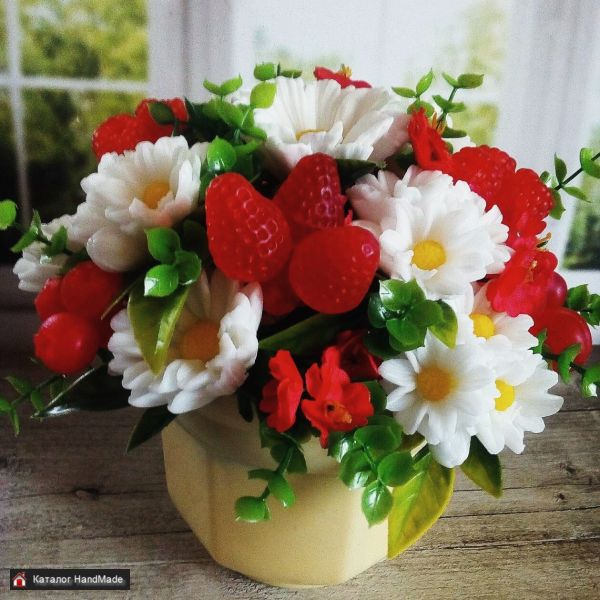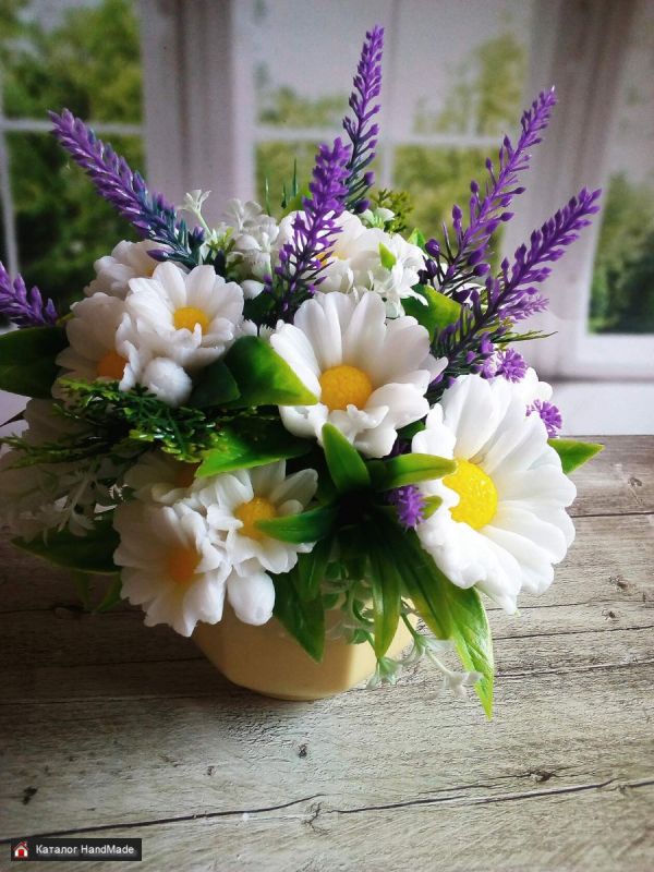 Красивый букет ромашек из мыльной основы, ручной работы может стать украшением любого уголка дома или офиса. Так же может стать подарком для дорогих, любимых, близких людей. Могу сделать букет любых цветов и расцветок, маленьких и больших по Вашему.