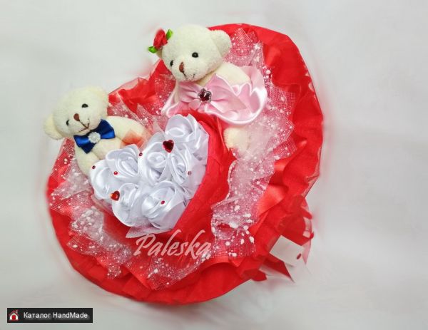 Букет - сердце из мягких игрушек, красный ― будет оригинальным подарок на рождество, выписку из роддома, 14 февраля, 8 марта, день рождения, день свадьбы и т.п. Каждый букет ― это ручная работа мастерицы, что делает его уникальным и неповторимым. Кроме того, букет из мягких игрушек не завянет и не утратит своей привлекательности. Порадуйте своих близких оригинальным подарком наполненным теплотой рук мастерицы.