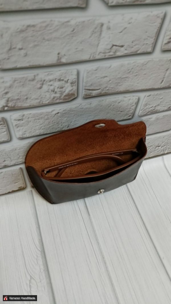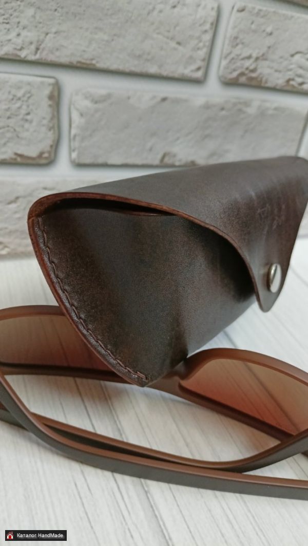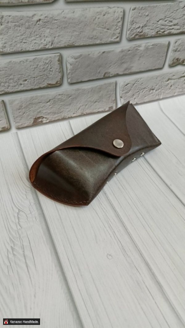 Чехол для очков из натуральной кожи ручной работы. Классическая конструкция очёчника позволяет разместить в нём практически любые очки, как маленькие для чтения, так и крупные солнцезащитные очки. Держит форму и удобно закрывается за счёт внутренней детали. Стильно и практично. Позаботьтесь о своих аксессуарах.