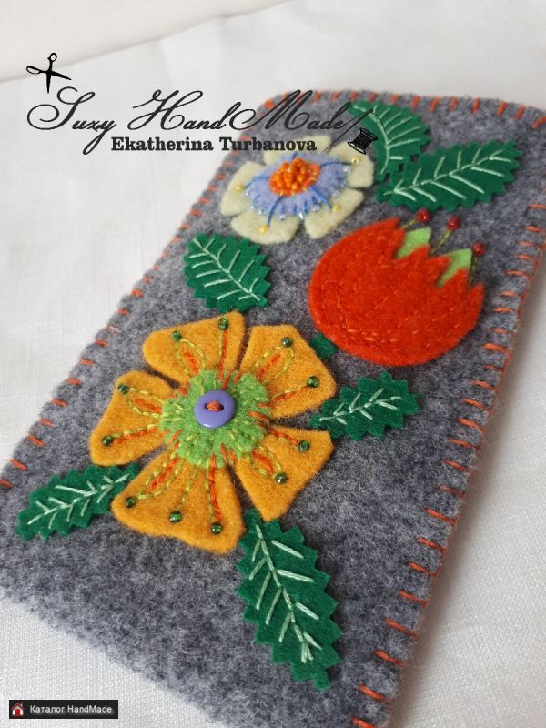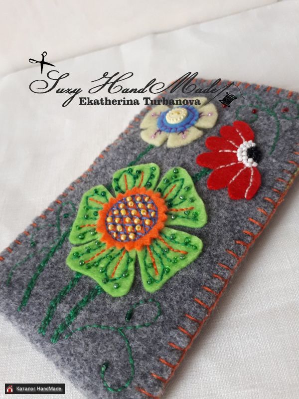Новый чехол для телефона или очков из итальянского фетра, двусторонний:с каждой стороны новый рисунок.