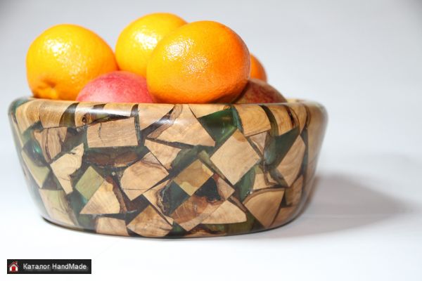 Миска из оливки и эпоксидной смолы. 100% ручная работа. Высота пр. 7 см., диаметр пр. 19,5 см. Без декора.