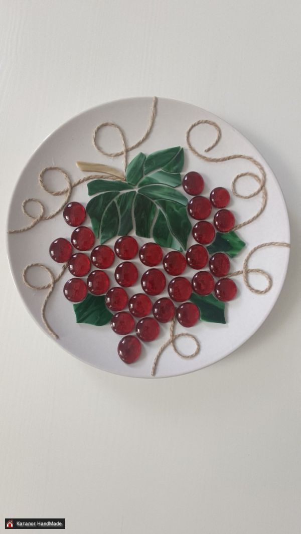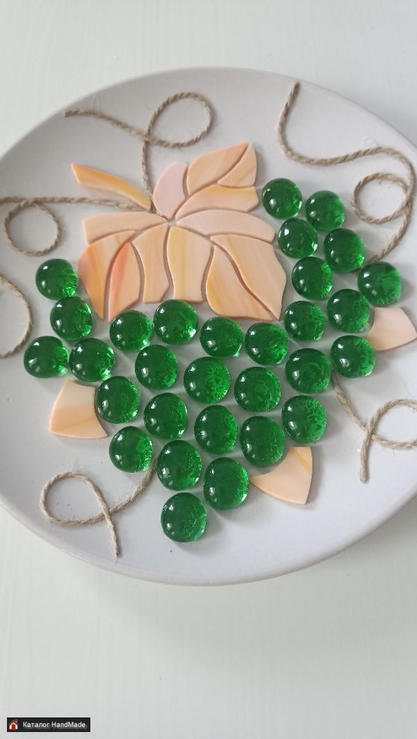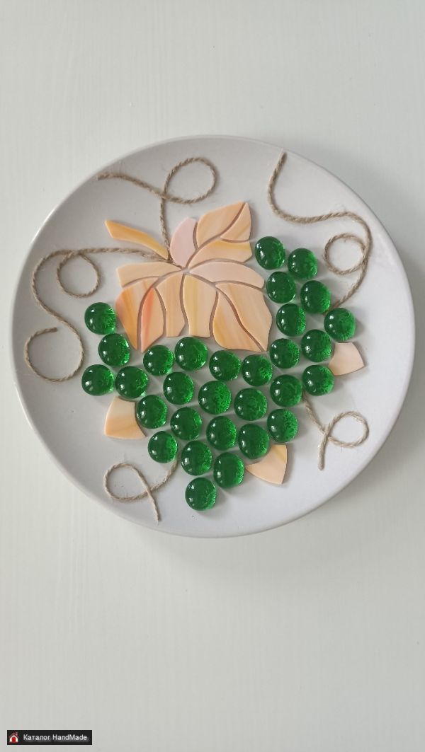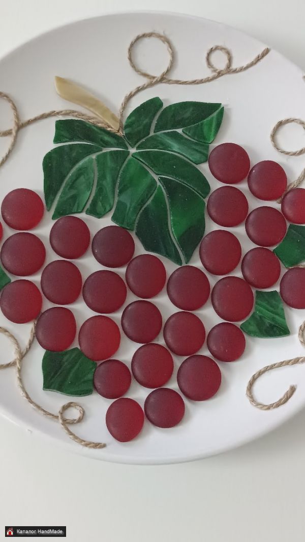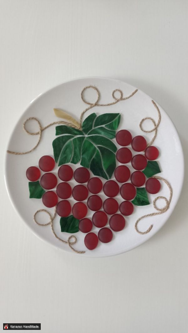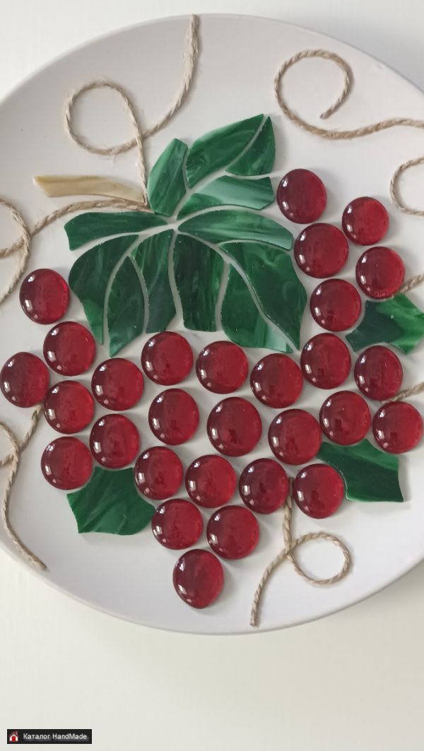 Декоративное панно ручной работы Виноград выполнено из экологически чистых материалов. Керамика, стекло цветное витражное.