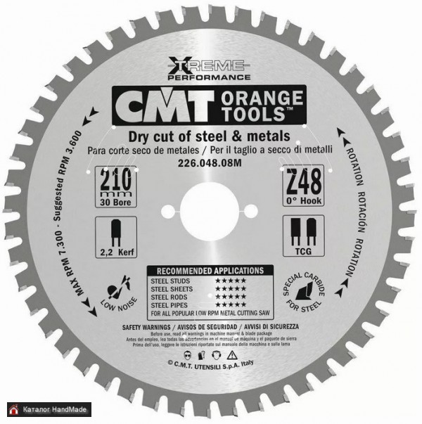Круг пильный твердосплавный CMT 226.048.08M 210X30X2.2/1.8 0° FWF Z=48