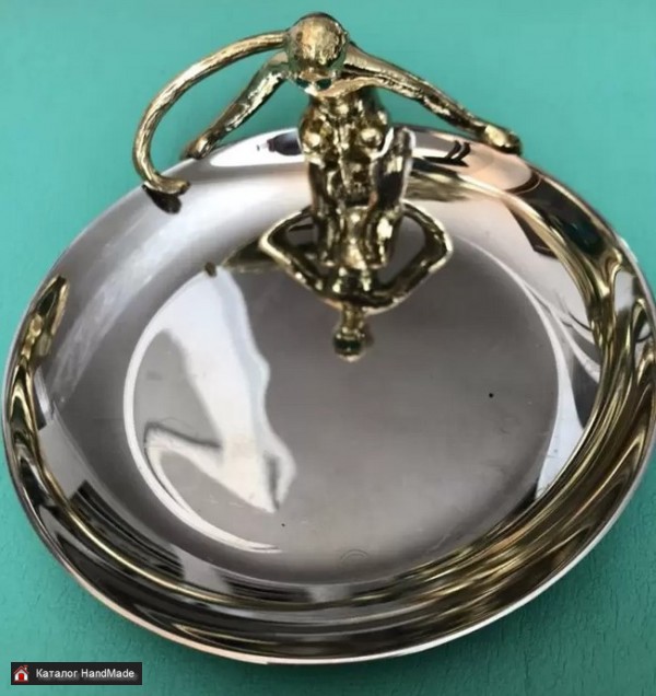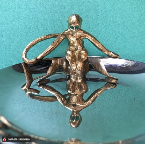 Дизайнерская вазочка ручной работы из США фирмы Michael Aram. Вазочка- сталь, обезьянка- бронза, с глазками из ярко зелёного нефрита. Коллекционный предмет