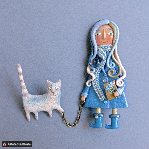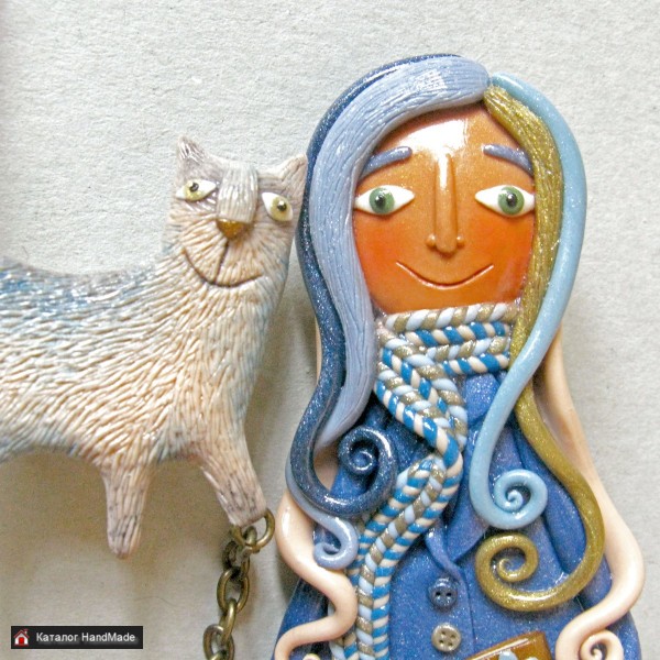 Ручная работа. Полимерная глина Рост девочки – 8 см., кот – 3 см (длина), 5 см (высота с хвостом))). В единственном экземпляре. Без торга! Без повтора! Можно в подарочной коробочке.