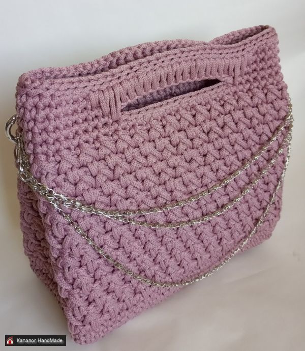 Сумочка - один из самых важных женских аксессуаров, который предназначен не только для того, чтобы дополнять интересный образ, но еще и для удобства женщины. Элегантная сумочка, цвет - пепельно-розовый (цветовой оттенок может отличаться от представленной фотографии, в зависимости от вашего компьютера). Связана из полиэфирного шнура, что обеспечивает приятные тактильные ощущения. На донышке имеются пукли против истирания. Имеется подкладка. Дополнительно к ручкам, имеющимся на самой сумочке, имеются 2 съемных ремешка, которые помогают разнообразить образ: один - в тон сумочки, длина 120 см, связан из полиэфирного шнура, позволяет носить сумочку на плече, второй - в виде цепочки, длина которого 120 см, позволяет использовать несколько вариантов: носить на плече, в руках на уменьшенной длине или просто как украшение. Размер сумочки - 23 х 21 х 10 см
