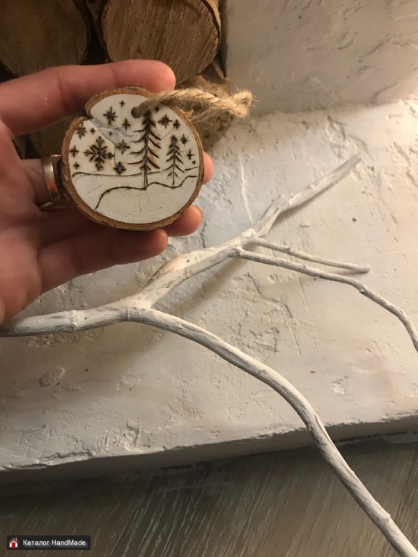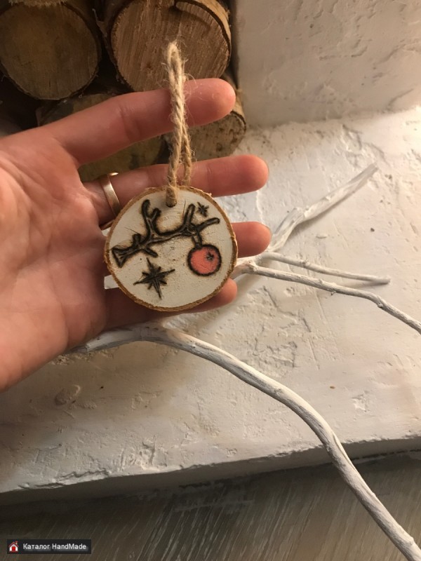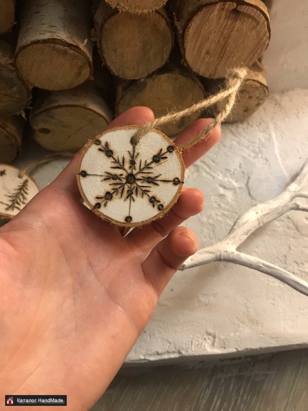 Елочные украшения на спилах, диаметр 5см, набор их 7штук