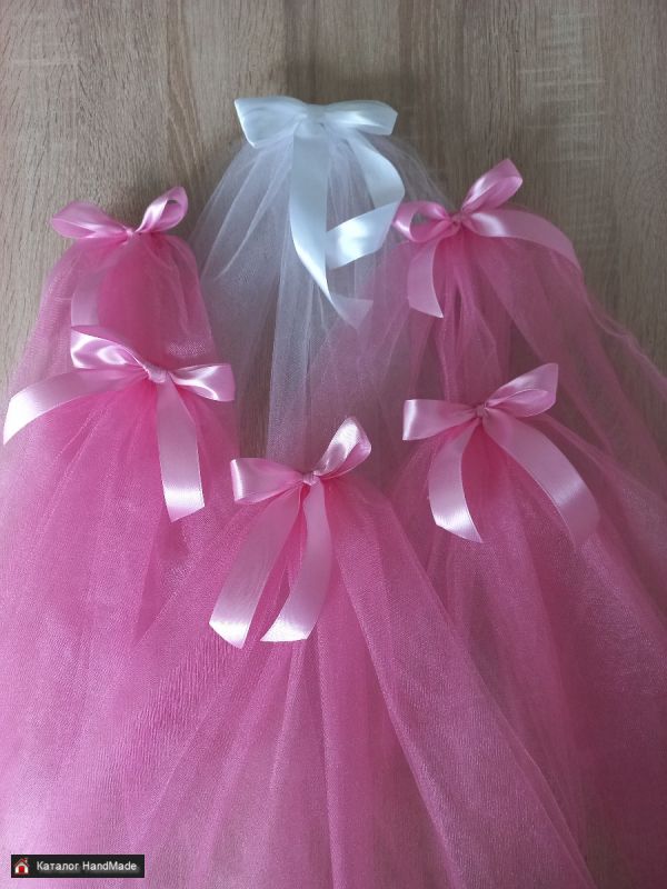 Набор фаты для девичника 1 белая 5 розовых Длина 50 см, два слоя фатина, крепление на заколке Возможно любое количество и цвет