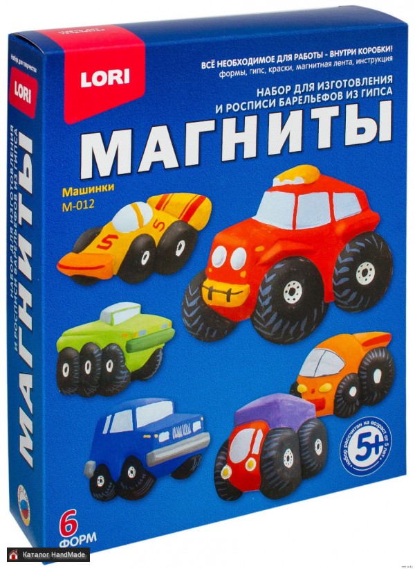 Набор для отливки барельефов "Машинки" разработан для детей от 5 лет. Он дает возможность в домашних условиях изготовить магнитные фигурки разноцветных моделей машин с рельефными формами. При раскрашивании полученных фигурок ребенок получает возможность максимально проявить свои творческие способности и воображение. Работа с данным набором развивает фантазию и художественные способности, и весь процесс изготовления фигурок становится увлекательным и познавательным. Подарите вашему ребенку возможность почувствовать себя настоящим скульптором! Средний размер магнита: 60х50 мм. Производитель Lori Сложность Для всех Возрастные ограничения 5+ Упаковка Коробка Размер упаковки 185х220х50 мм Артикул М-012 Вес 450 г Состав Форма для отливки Гипс 6 красок Кисть Магнитная лента Инструкция на русском языке