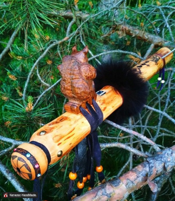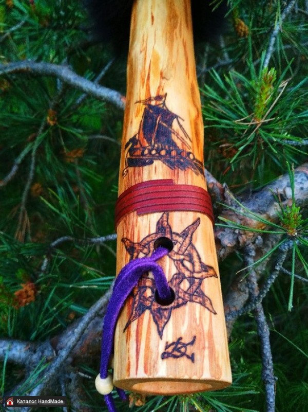 Флейта пимак️"Викинг"️из массивной ветки орешника блок резной викинг тонированный орех,кож.ремни,шкурка песца,стилизованная пирография,вощён и пропитан льняным маслом,настроен в тональности D#(ре диес)Свободен для приобретения!