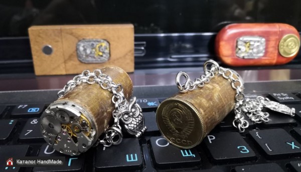 Материалы: флешка, часовой механизм, деревянная флешка, механизм стимпанк, монета ссср, флешки из дерева, стимпанк флешка, steampunk флешка Размер: 16 Гб и 64 Гб (+500 руб. к цене) 41 х 18 х 25 мм Цепочка 16 см Вес 20 г