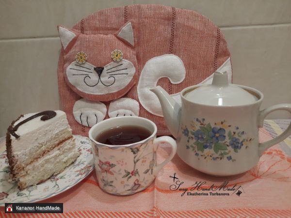 Грелка на небольшую посуду,можно на заварочный чайник. Состав ткани лен,отделка белый лен,на подкладке.Утеплено двойным слоем синтепона и простегано.