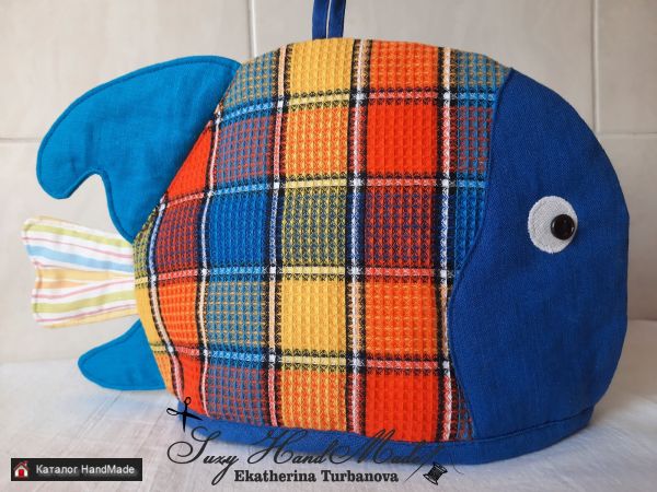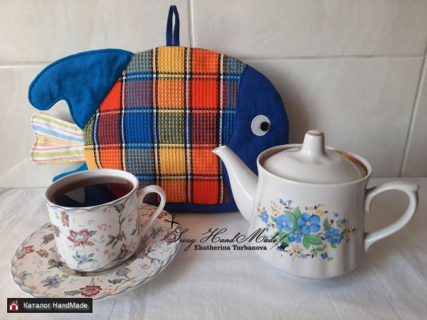 Грелка на заварочный чайник "Рыбка Египта ". Размер 28х19 см. Внутри утеплено синтепоном и простегано.