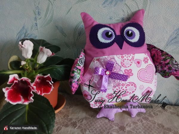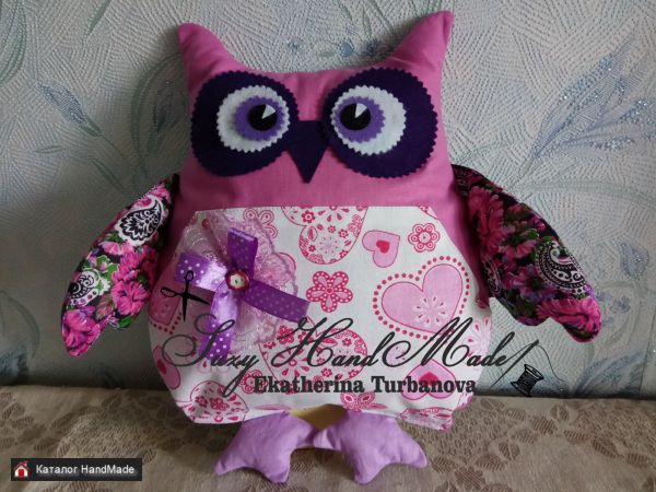 Игрушка Сова из натуральных тканей в розовых тонах. Размер 37х39 см. Могу сшить в другой цветовой гамме. Прекрасный подарок ребенку. родным, близким, друзьям.