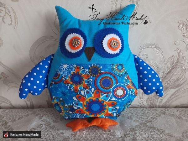 Игрушка ручной работы Сова.Яркая и позитивная Совушка украсит интерьер Вашего дома,создаст уют на кухне,в детской или в спальне,оживит кресло в лоджии или скамейку на даче.А главное-зарядит положительными эмоциями на весь день Вас и Ваших детей !