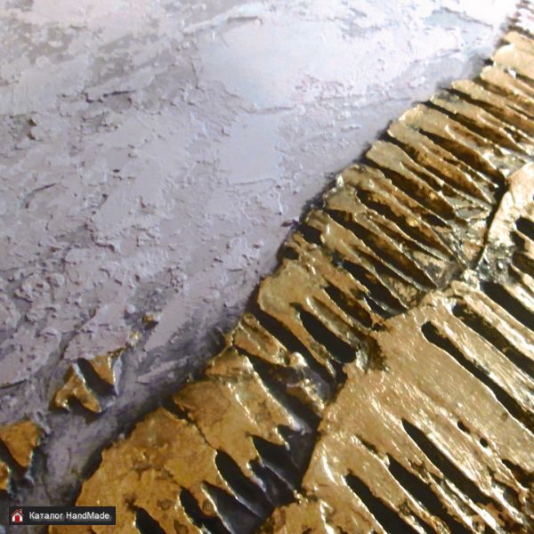 Интерьерная текстурная картина, с золотом, абстракция, рельефная, объемная, акрил