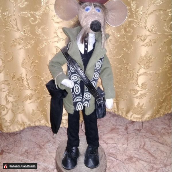 Интерьерная кукла "Крыс - Джентльмен" будет хорошим подарком для друзей и коллег. Изготовлен из шпагата на проволочном каркасе. Высота 50см.