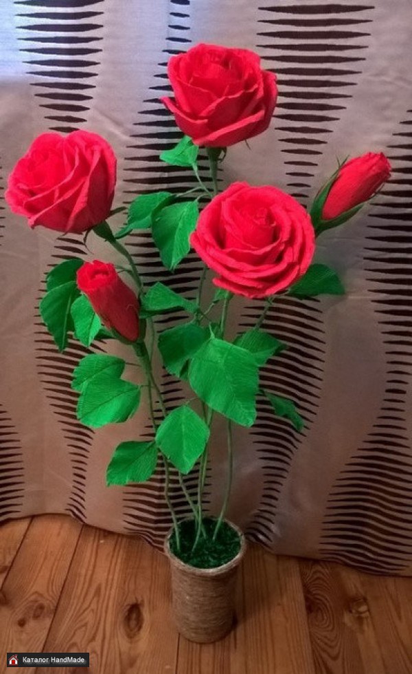Интерьерные цветы Розовый куст ручная работа станет отличным дополнением вашего дома. Размер: 80см высота, диаметр 12-14см Материал: Гофрированная бумага, флористические стрежни, гипс.