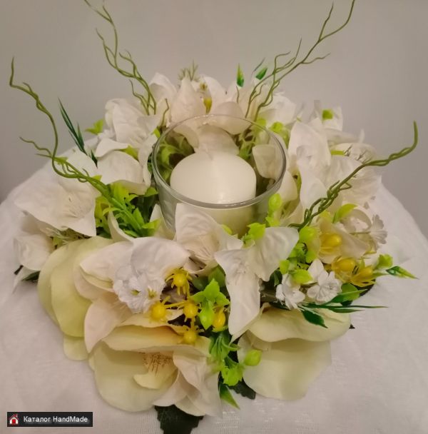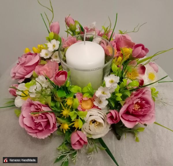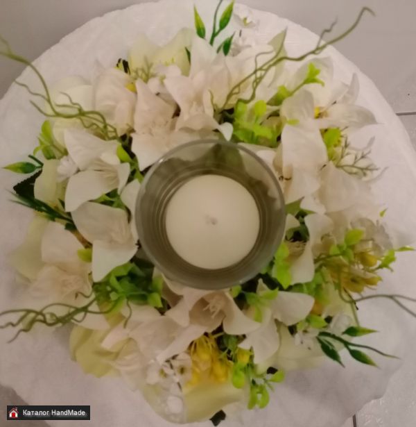 Интерьерный подсвечник с аромасвечой, диаметр 25см, высота 10 см, свеча в стеклянном стакане