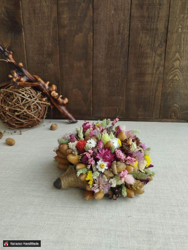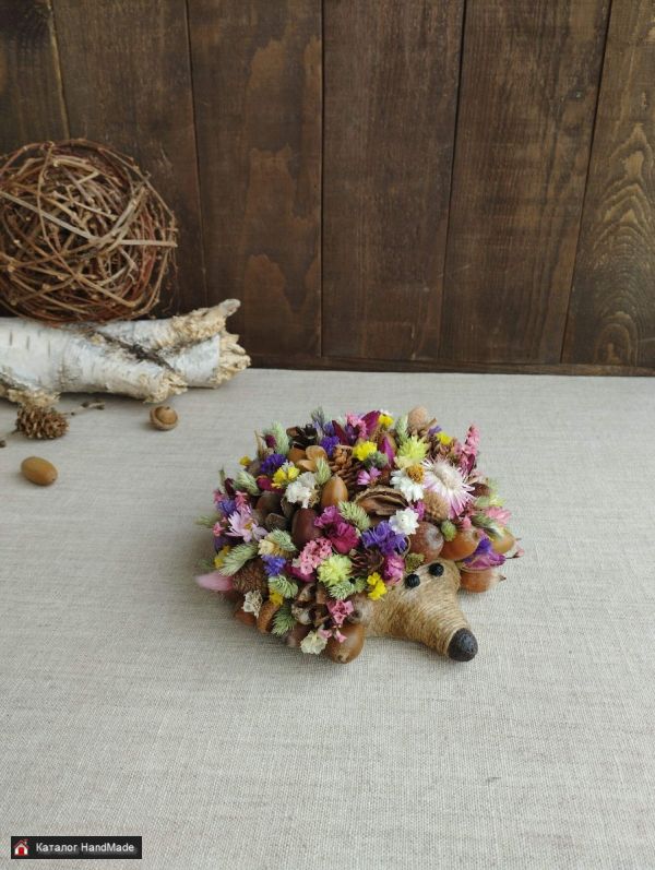 Ёжики из природных материалов и сухоцветов,длина 16 см, диаметр 17 см. Украсят интерьер,станут оригинальным подарком. Указанная цена за одного .