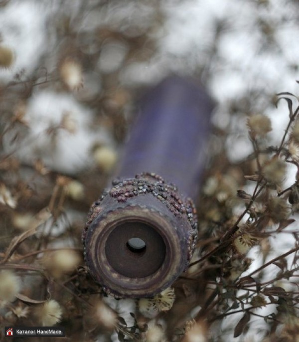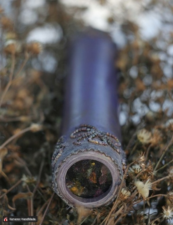 Декор: состаренная кожа, вышивка(бисер), дерево. Узор: насыщенный, лилово-золотистый с красными, зелёными, голубыми акцентами. Размер: 26Х4 см. Чехол.