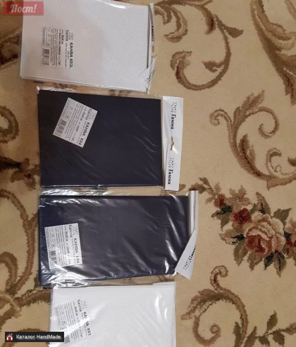 Канва для вышивки гамма: Аида 11 к.( 30×40)- белая Аида 14к.( 50×50)- синяя Аида 14к. ( 30×40)- синяя Аида 11к. ( 30×40) белая с перл люрексом