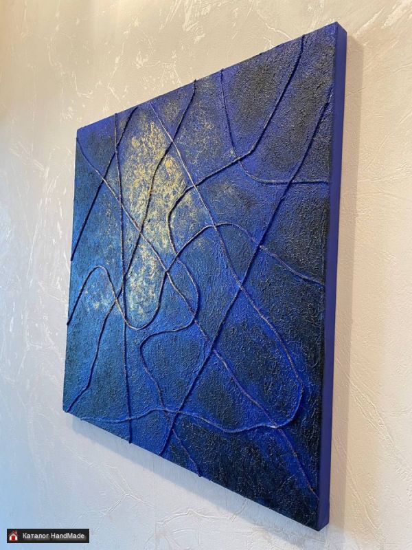 Картина "Нити" Синий цвет это спокойствие и безмятежность, поэтому идеальное место для размещения таких картин - спальня, гостиная или зона отдыха.