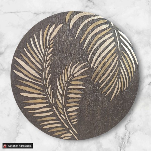 Картина написана акриловыми красками с использованием шпатлевки и листовой потали. За счет того, что картина текстурная хочется еще рассматривать и трогать.